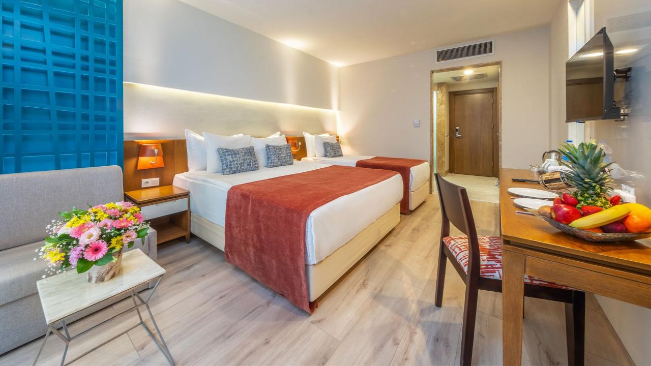 • zdarma: animační program, mini klub (4-12 let), gymnastika, šipky, aerobic, plážový volejbal, basketbal, stolní tenis, boccia, turecké lázně, živá hudba, tenisový kurt, sauna