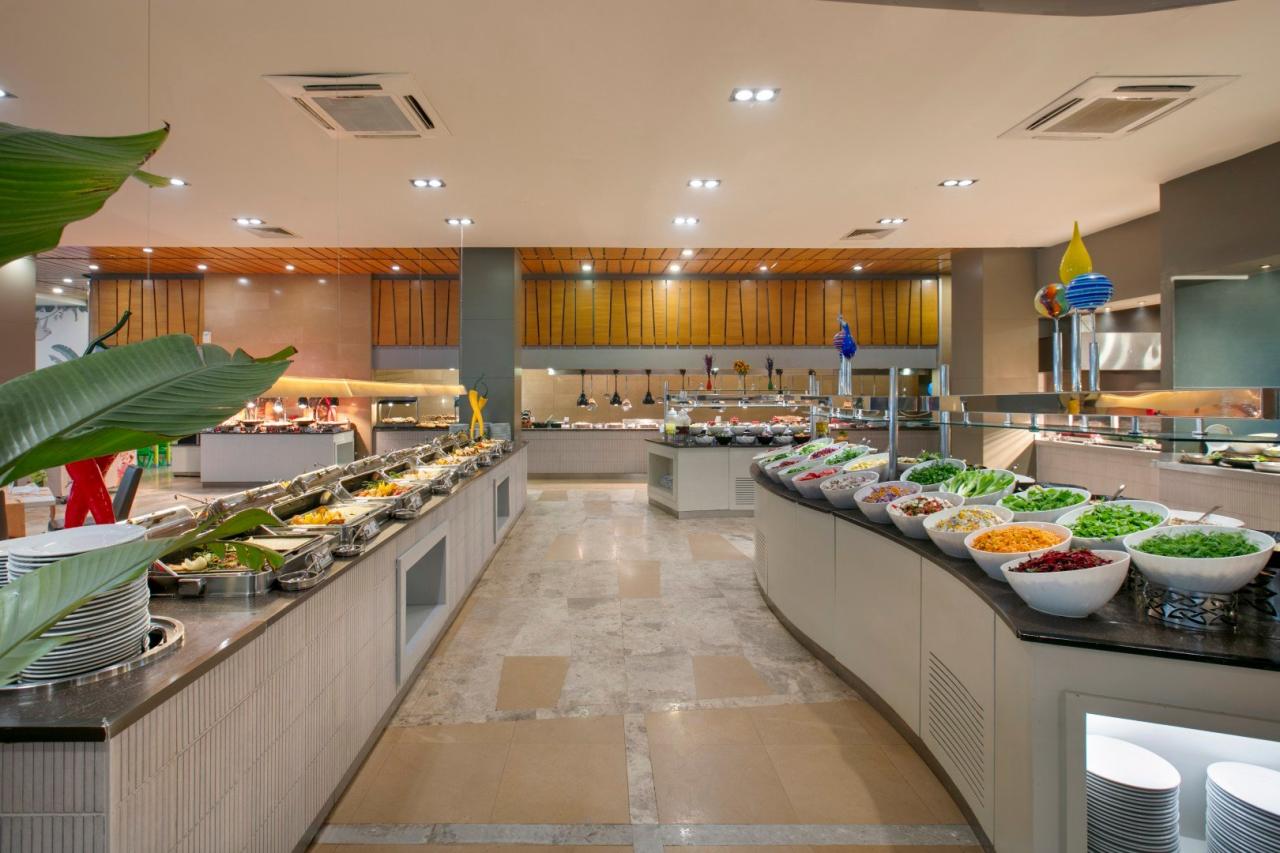 • Ultra All inclusive zahrnuje snídaně (07.00-10.00), pozdní snídaně (10.00-11.00), obědy (12.30-14.30) a večeře (18.30-21.00) formou bufetu v hlavní restauraci.